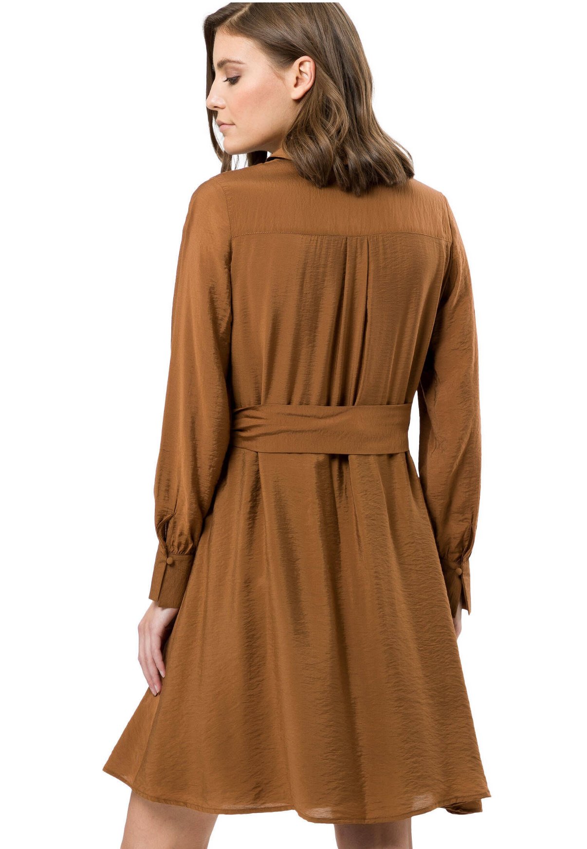 Die feminine Silhouette mit Taillierung und breitem, angenähtem Bindegürtel zeichnet dieses Kleid aus und macht es zu einem echten Hingucker.