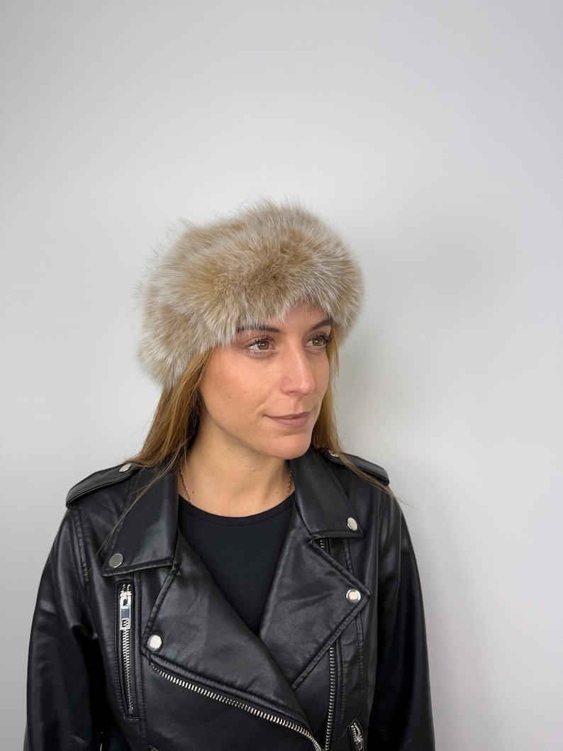 Mütze aus Fellimitat mit Ohrenklappen und verstellbarer Plastikschließe unter dem Kinn.