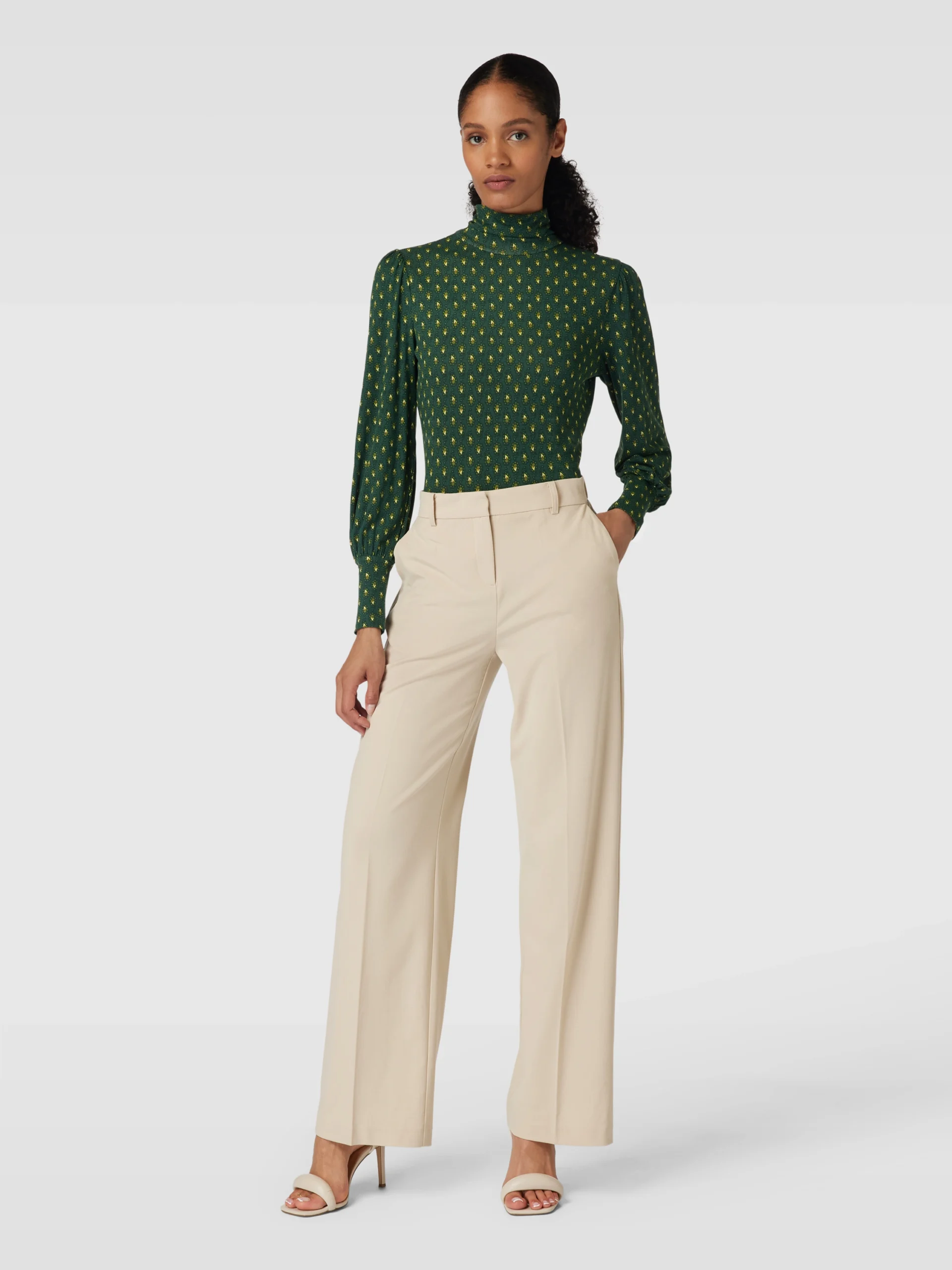 Langarmshirt, Gr. 38, moosgrün mit Paisley-Muster