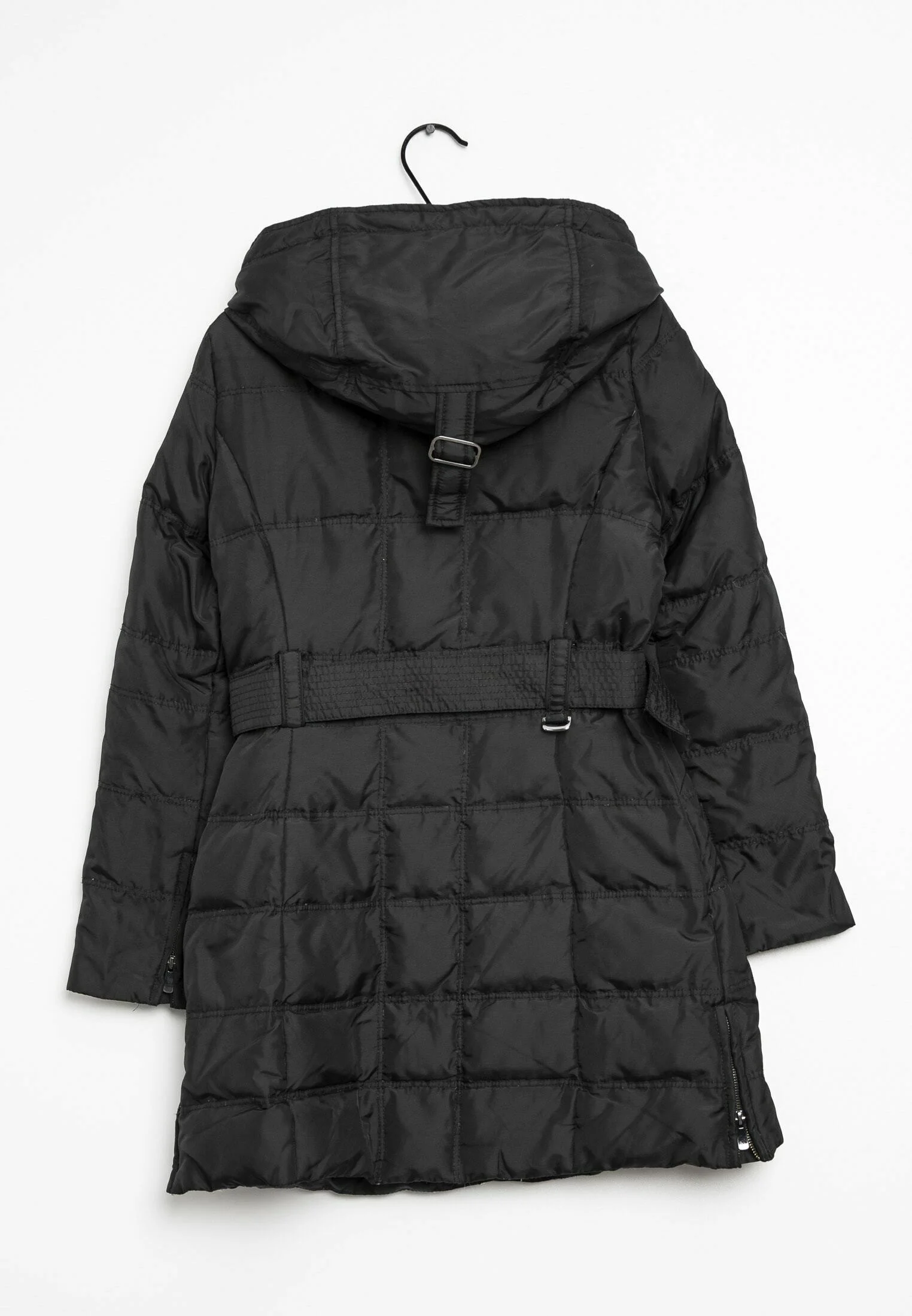 gesteppter Mantel, seitliche verschließbare Eingrifftaschen, abnehmbare Kapuze, mit echten Daunen und Federn gefüllt, zusätzlicher und abnehmbarar Stretch-Gürtel, verdeckte Knopf- und Reißverschluss-Leiste, eine Innentasche mit Knopf vorhanden